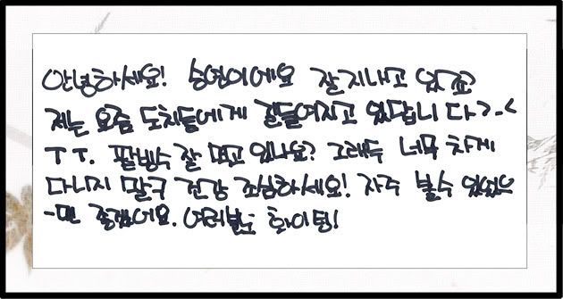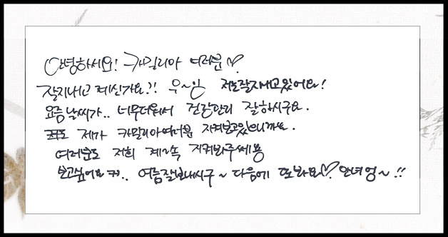 Apakah kalian menikmati musim panas kalian? Kami akan segera debut di Jepang… Jadi kami saat ini sedang bekerja keras untuk mempersiapkannya!! Agar nggak sakit gara-gara kepanasan, jaga kesehatan kalian ya~ Karena aku selalu sering memikirkan kalian~! Aku harap kalian semua tau isi hatiku^_^.. Dan kalian juga nggak boleh lupa untuk tetep sering dengerin Shimsimtapa ‘▽’.. Hix, itu dulu untuk saat ini, bye semuanya~ ♡